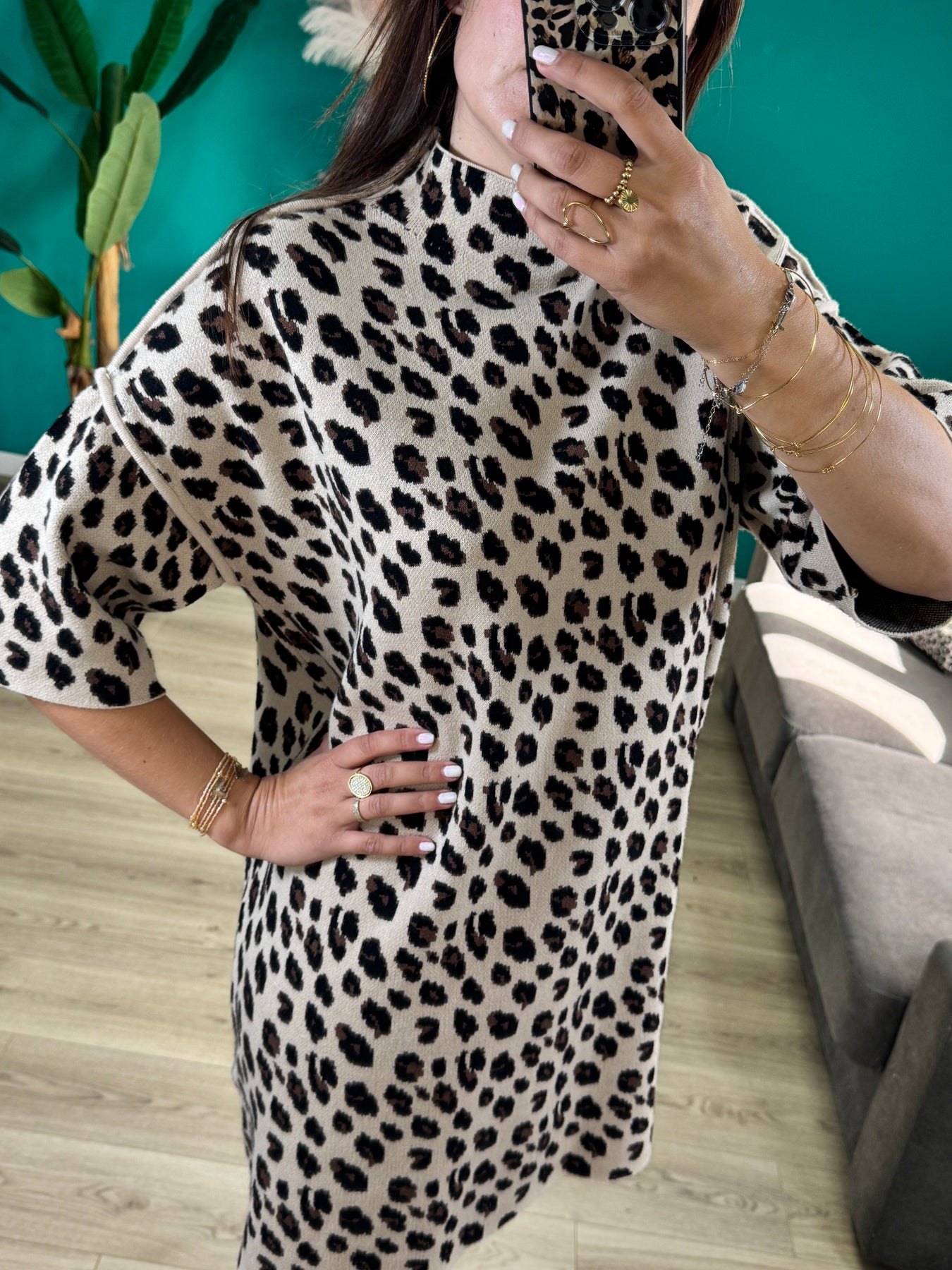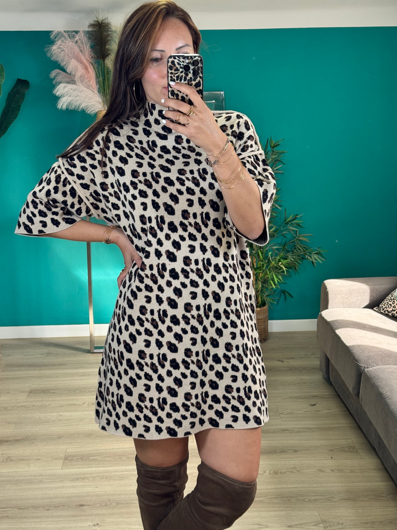 Affirmez votre style avec cette robe pull à motif léopard, alliant élégance et confort ! Sa maille douce et souple met en valeur la silhouette sans la mouler. Parfaite pour la mi-saison comme pour l’hiver, elle se porte aussi bien avec des cuissardes qu’avec des bottines pour un look féminin et tendance.