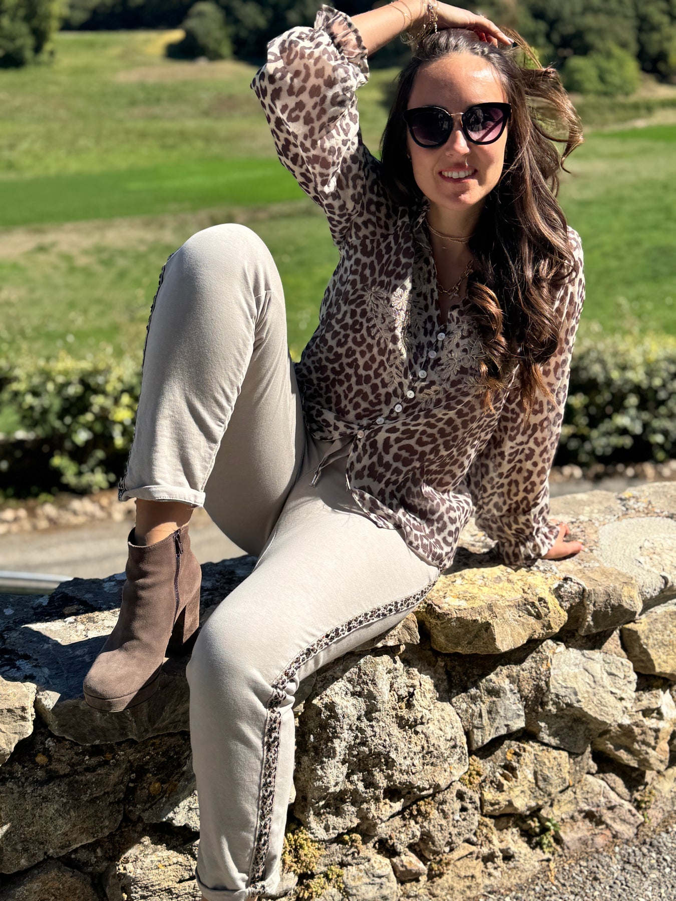 Laissez-vous séduire par cette chemise en voile imprimé léopard, légère et élégante, parfaite pour apporter une touche sauvage et tendance à vos tenues.