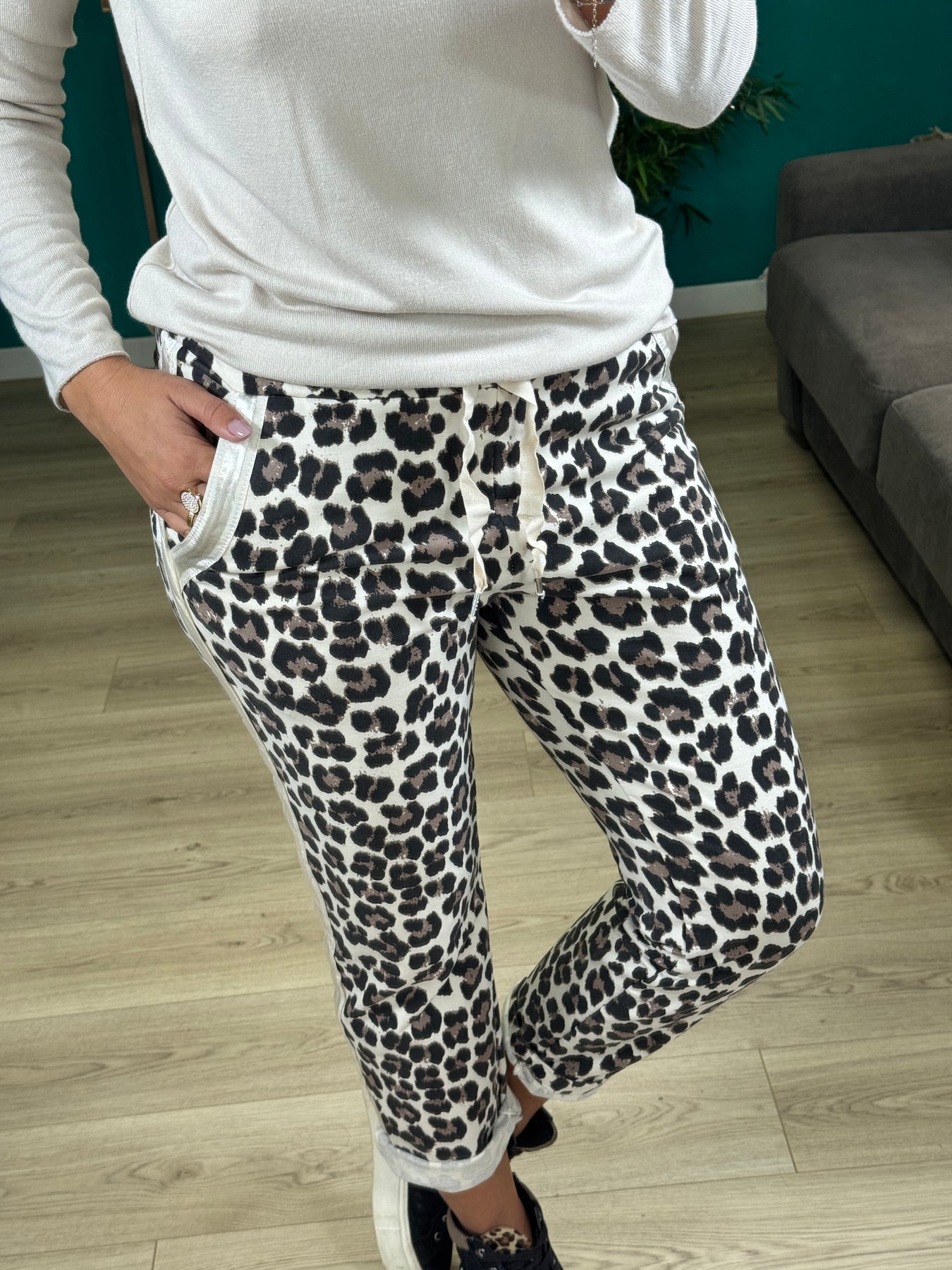 Alliez confort et tendance avec ce jogger imprimé léopard, une pièce mode idéale pour un look décontracté mais stylé. Conçu dans une matière douce et extensible, il s’adapte parfaitement à la silhouette et se porte aussi bien au quotidien qu’en sortie. Son imprimé sauvage en fait un indispensable pour les fashionistas.