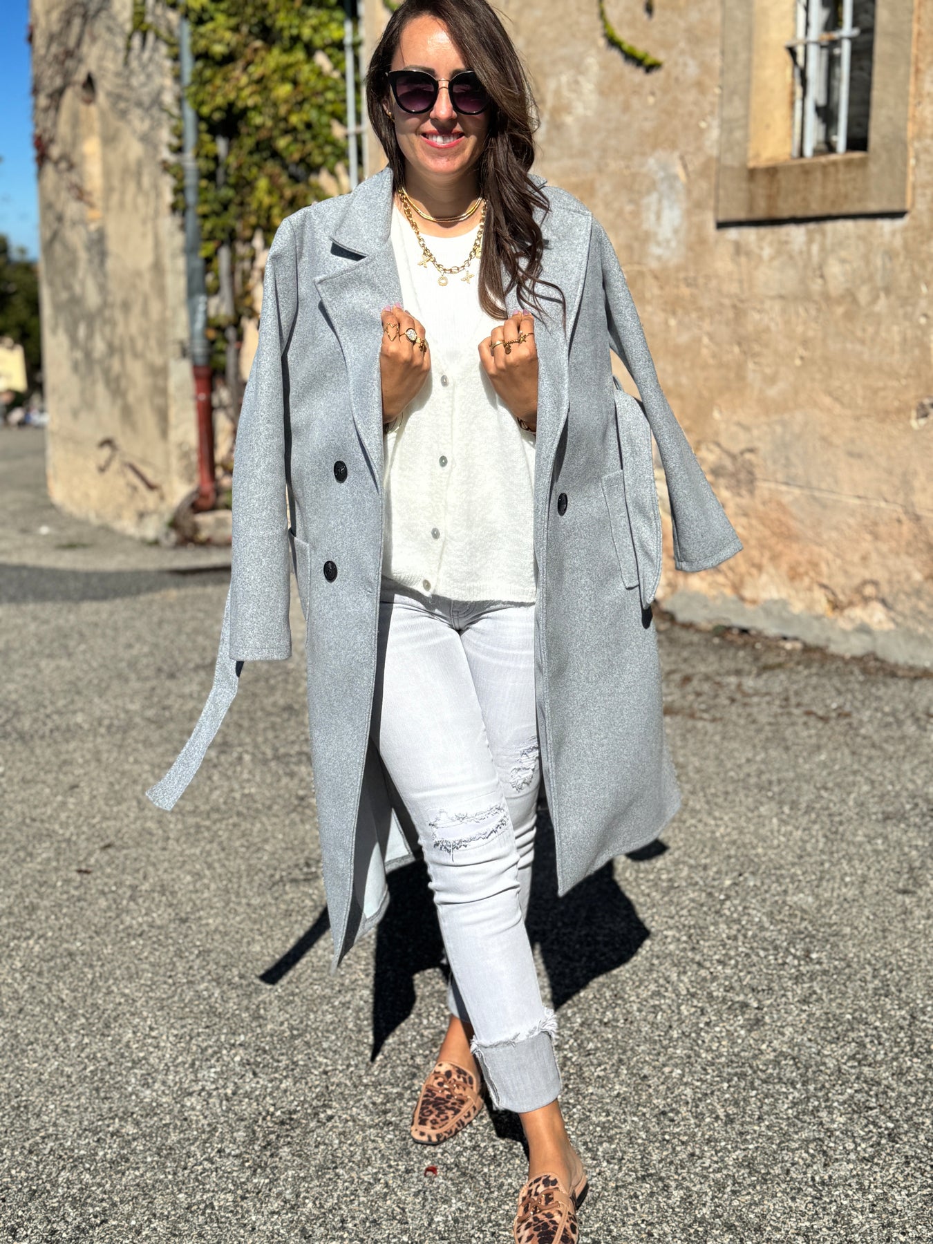 Manteau ceinturé gris clair – Fabrication italienne